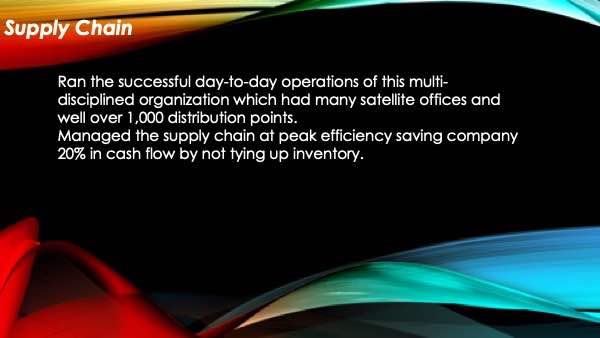 I have very strong writing and verbal skills. I am a team player who communicates efficiently and effectively to all levels of management and employees. Throughout my career I have had about a dozen direct reports and was responsible for up to 100 employees at five locations. They ranged from the vice presidents of the company down to the minimum wage workers. I have years of experience in managing sales and sales support. Using data manipulation techniques, the sales staff had all the tools they needed to be successful. I have a degree in Electrical Engineering and attended St. John’s University for an MBA.